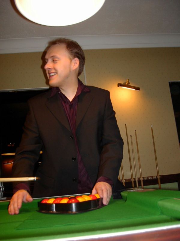 01:17:46 A bout of snooker/pool playing ensued. Here's Kevin racking them up. |