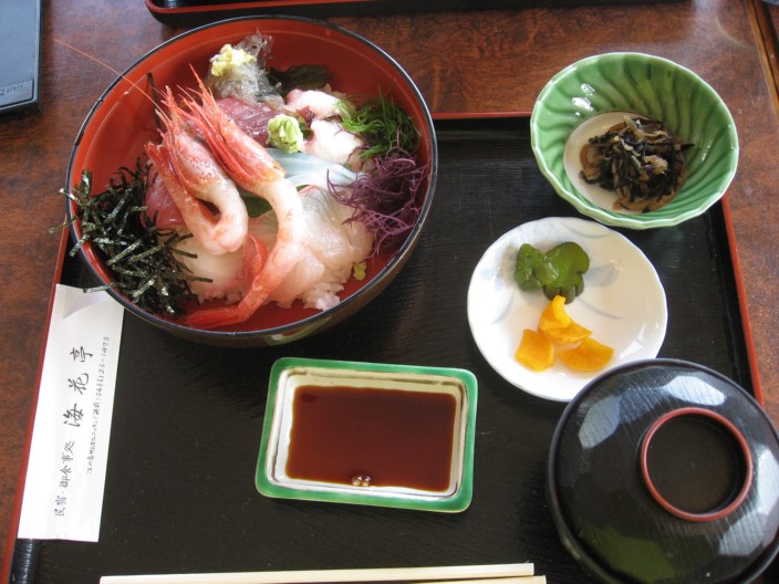 07:38:26 Our lunch, a rather great "Kai-nantoka-don" where "nantoka" means that I don't remember the word, while Kai is shells and don is the rice underneath... |