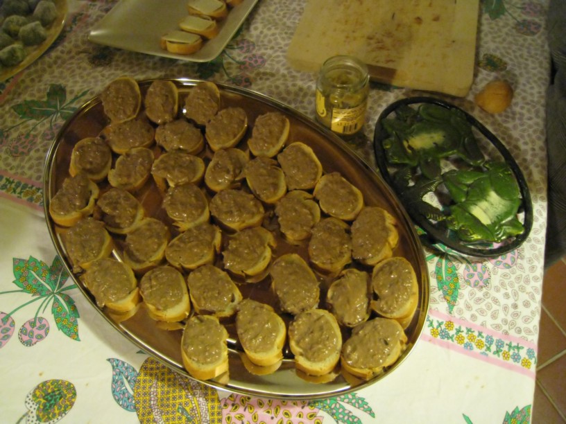 Now garnishing croutons with a typical Tuscan liver sauce. |