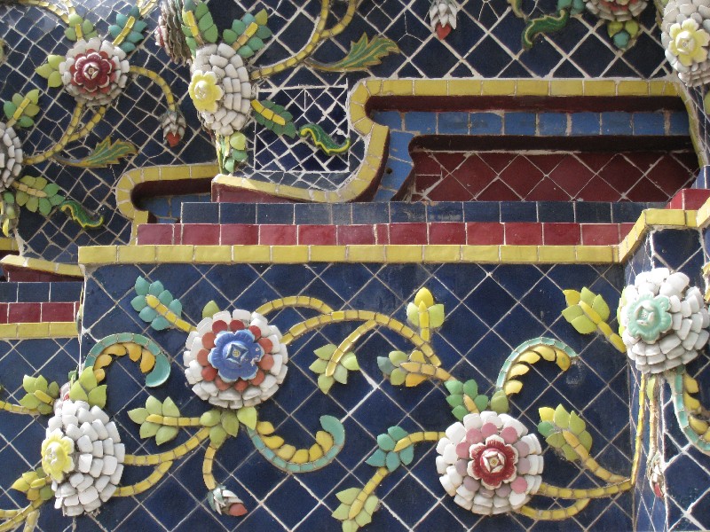 | 04:57:03 Inside the palace the visit starts with the "shrines and temples" bit. | 04:57:54 Wooooo impressive! Everything here is made with little pottery pieces, it's really a form of art that I had never seen before... | 04:58:27 More votive bits and pieces, the buildings are really tall and colorful, quite marvelous. |