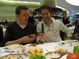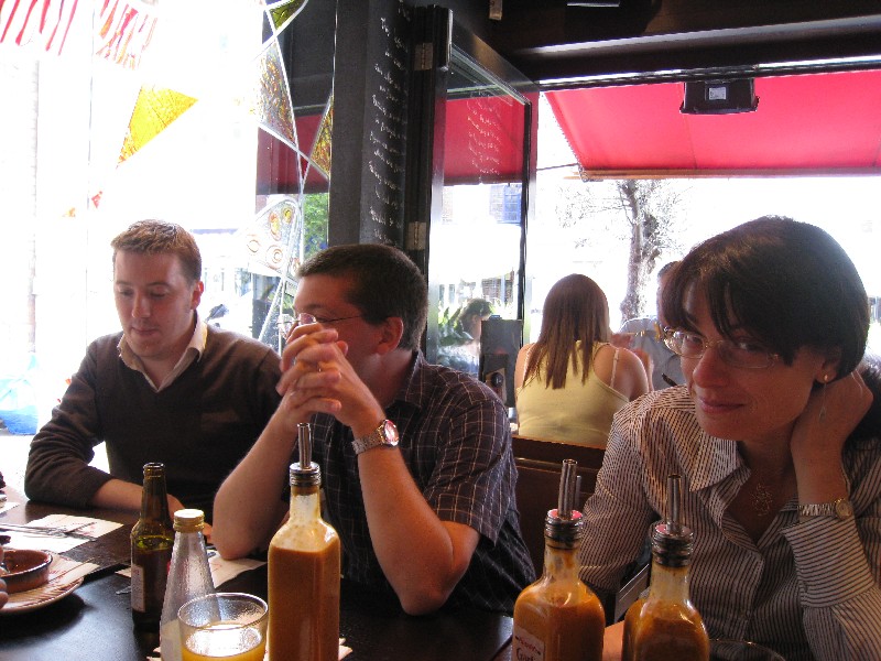 | 15:18:56 John, Simon and Chiara. | 15:19:10 Just Chiara! | 15:41:49 Rob at his best after having had too much spicy sauce! :D |