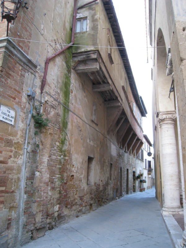 | 16:38:25 Belltower. | 17:16:03 Here we are in Pienza, I loved this street! | 17:16:59 Main Cathedral in Pienza, beautiful little town. Not the fire in the middle of the street. |