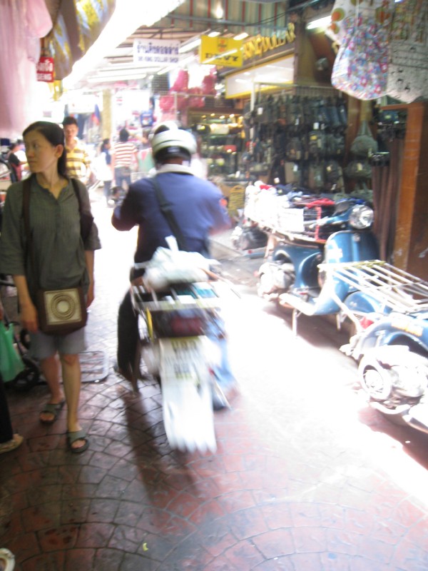 | 07:27:44 China Town and some plastic (with people eating)... | 07:29:59 Of course the streets are terribly narrow, but people still want to go by moped! | 07:32:49 When you say a "branded scooter" |