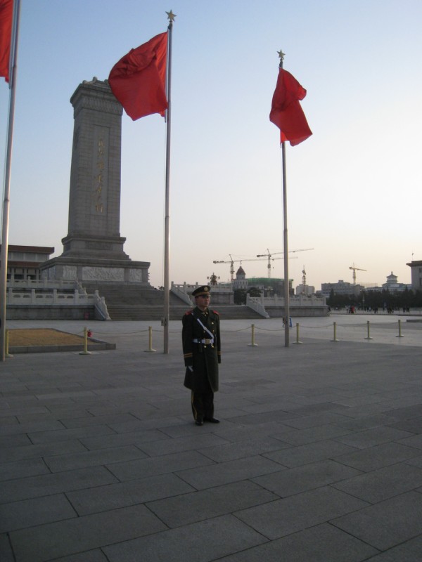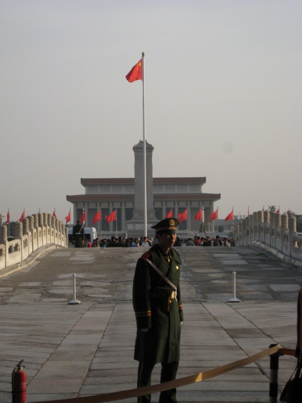 | 11:22:07 PRC Flag! | 11:28:35 The forbidden city from the center of Tie-an-Min square. | 11:29:35 Monument to the people in Tien-an-min |