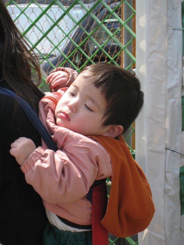 | 02:57:29 Queuing for Pachinko in Shinjuku early in the morning... | 02:57:46 Checking the road work, I loved the colours on this man... | 03:14:08 Some details near Meiji Jingu.. |
