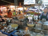 | 07:43:34 Close up! | 07:47:36 I have never seen so many cashewnuts in the same place! | 07:48:53 Typical fish vendor, in the middle of the street, with millions of cars driving very close in the blistering heat of the day... how good can this fish be? |