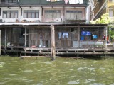| 05:45:51 Closeup of the flower chains that are set on the front part of the boat. | 05:55:55 Some Thai people on the boat. | 05:58:18 Along the river you get to see very rich places and also very poor ones... |