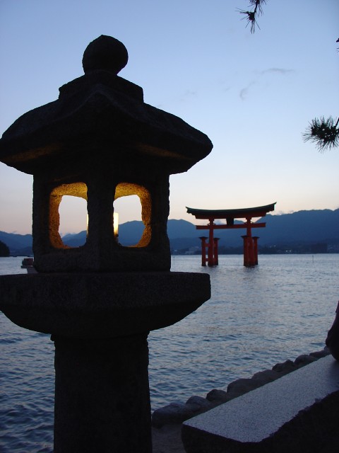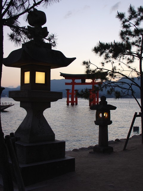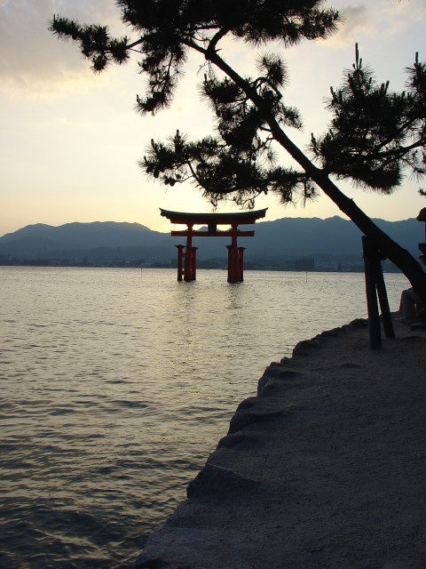 Friday 22:58 Myanjima no Umi no tori. Literally: The Myanjima gate of the Ocean. Ithink that that is its name. I tried to get the tree in the middle to get more depth. |