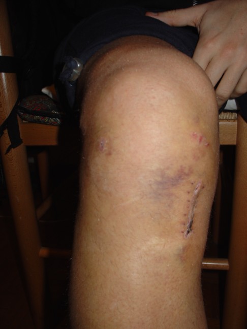 As you can see the swell is rather big, if felt like having a wooden pick right inside the knee... |