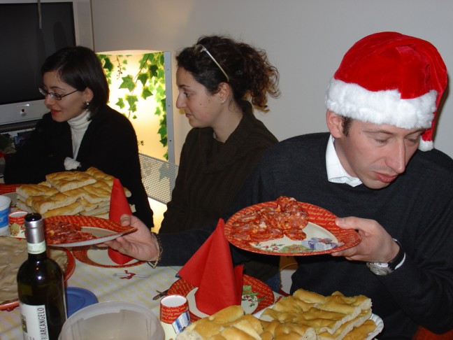 Setting up for the party at Elena's house. In this pic we have Marta, Luca, Elena, Lura and Francesco |
