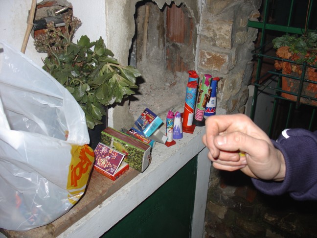 Marvellous picture of Luca and Elisa setting fire to their creation. Look at the faces, POETRY IN ACT! |