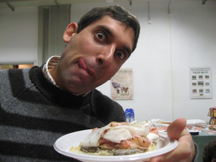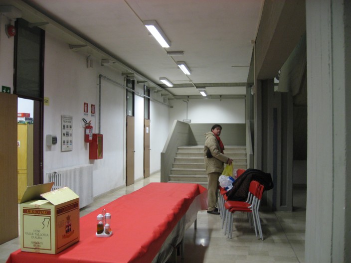 Fede and Giova cutting schiacciata for the marvellous "Schiacciada della Jolanda Cena". Unfortunately our favourite "Pugi" store was closed so we had to go at Jolanda's place to get a replacement... |